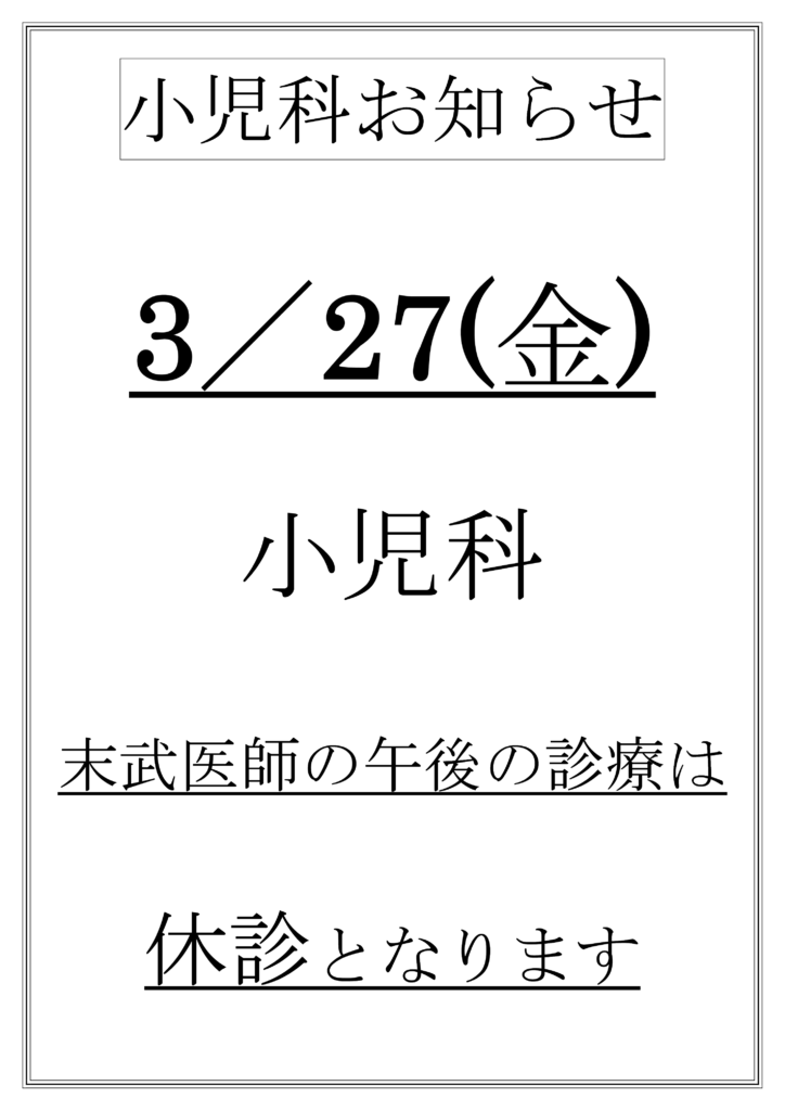 3月27日小児科診療について