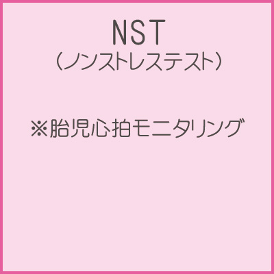 - NST(ノンストレステスト)お母さんのお腹にモニターをつけて胎児の心拍を観測し赤ちゃんが元気かどうかを判断する検査です。