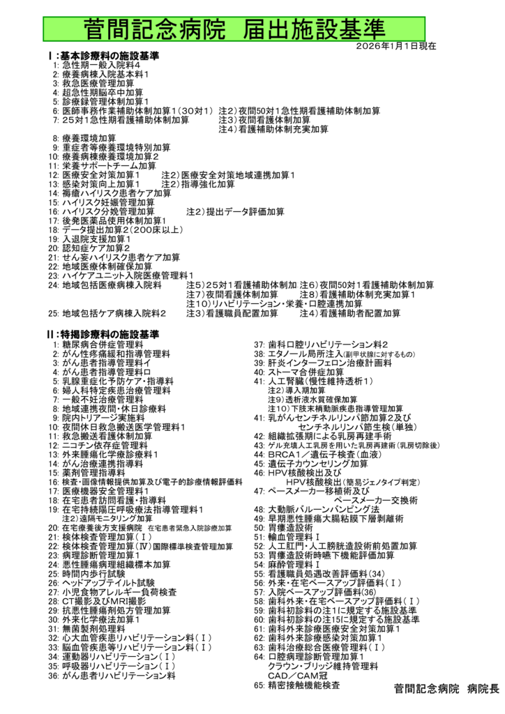 当院が届出を行っている施設基準・加算について