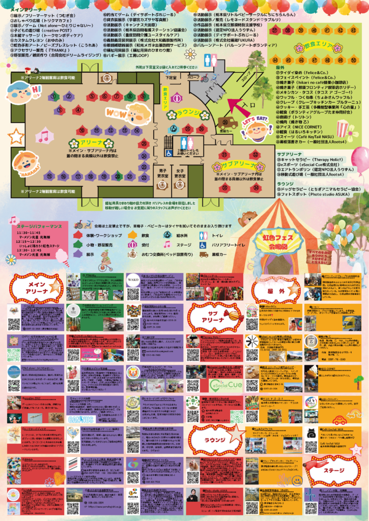 12時15分からの「虹色ステージ」はどなたでも飛び入りでご参加いただけます。一緒に盛り上がりましょう。