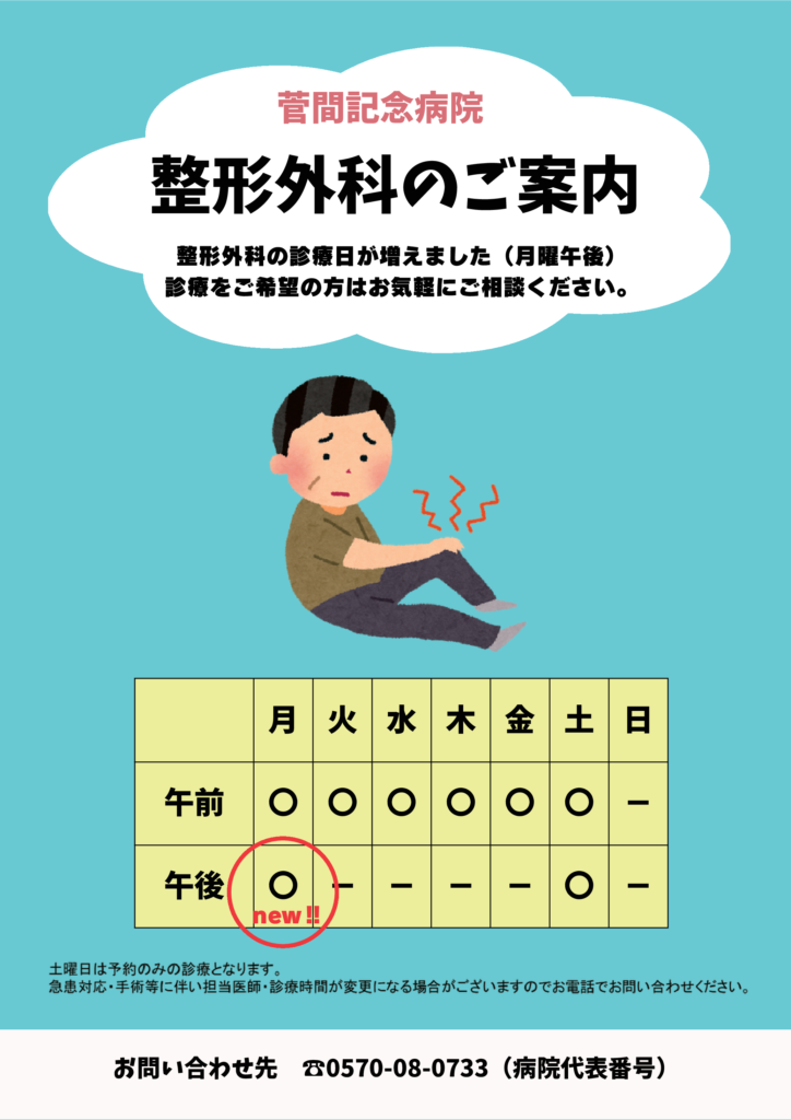 整形外科の診療日が増えました(月曜午後)